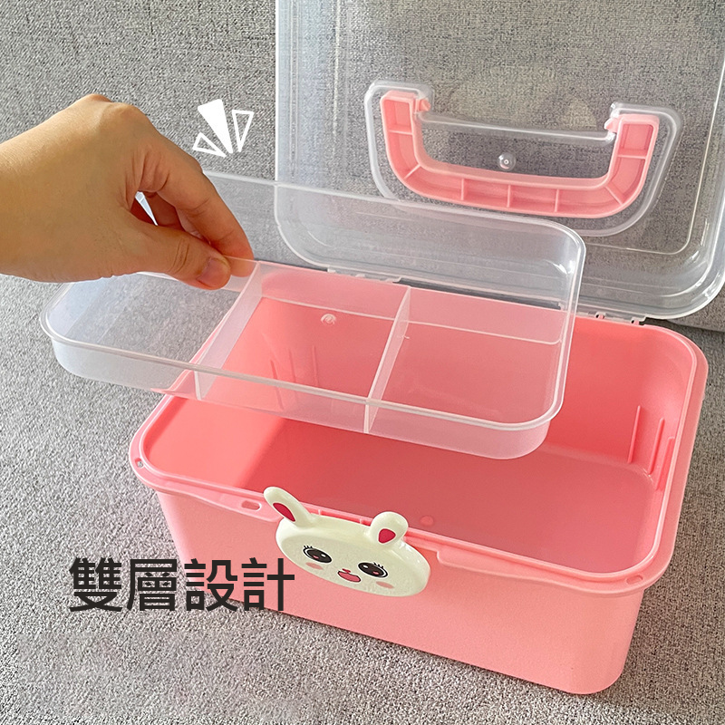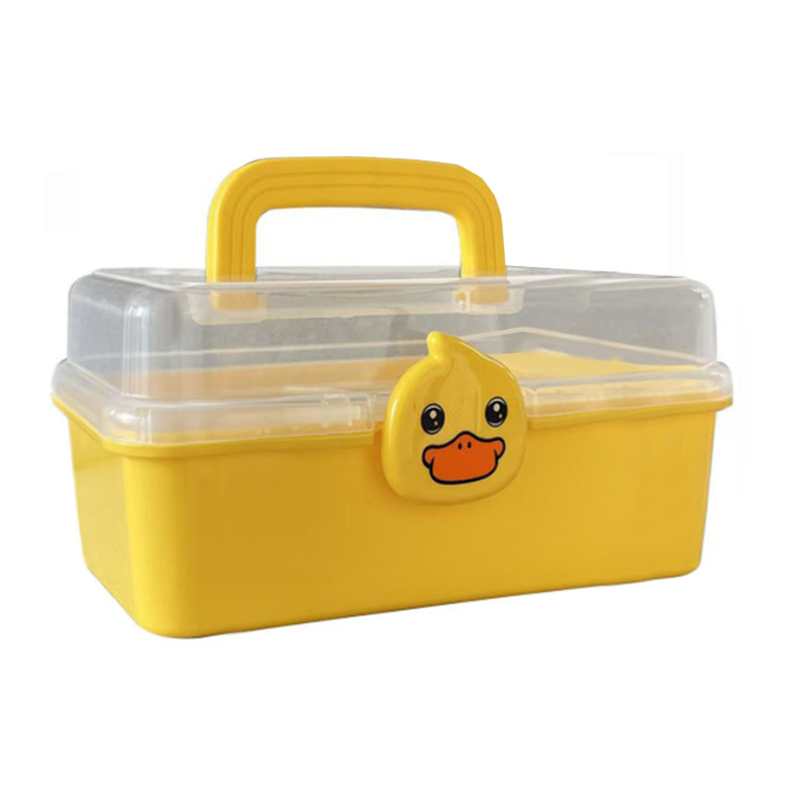可愛卡通雙層手提收納盒,採用亮眼色系搭配立體小鴨扣具設計,不僅實用更充滿童趣!